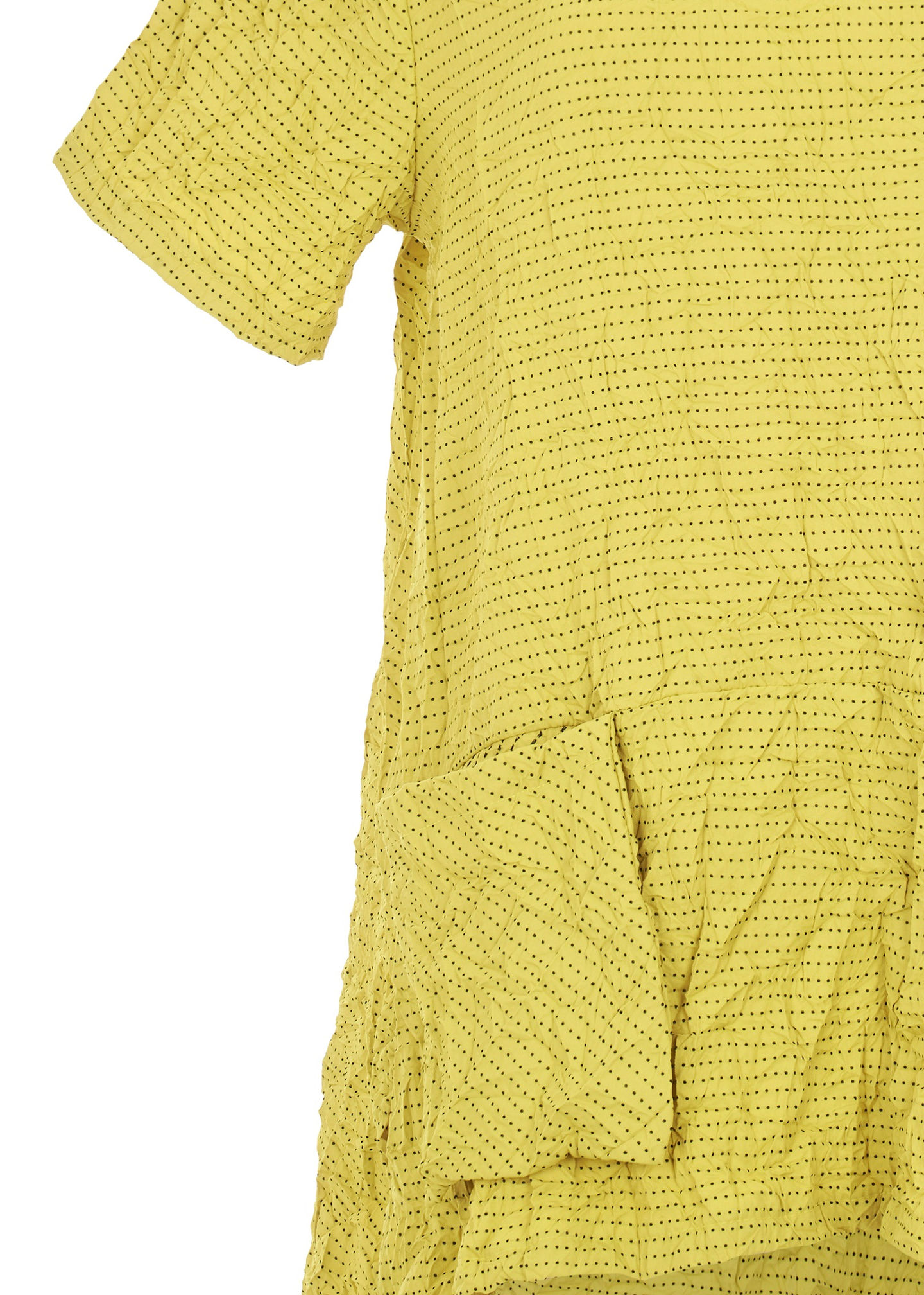 The Adan Tunic by Kozan is a playful and stylish addition to your wardrobe. This eye-catching shirt features small black polka dots arranged in neat lines across the fabric, creating a chic and modern pattern. Designed with fashion and functionality in mind, this shirt boasts a round neckline and slightly dropped sleeves, providing a relaxed yet polished look. The high-low hem adds a flattering silhouette with side slits for a comfortable fit.Two large front pockets near the hem not only enhance the visual appeal but also offer practical storage for your essentials. Elevate your fashion with this versatile piece.
